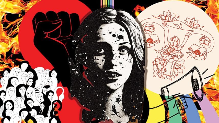 A common charge feminists in many post-colonial nations face is that their activism is “imported” from the West. When they challenge harmful practices within their own societies or advocate social change, fundamentalist groups reject their interventions and label them “Westernised”. Feminism in these regions is dismissed as a product of a colonised consciousness, on the grounds that critiquing “our culture” or seeking to change it is understood as colonial reasoning. Behind this rhetoric lies a rigid us-versus-them worldview, in which “our culture” is imagined as pure, authentic, and under threat, while “their culture” is cast as an invading force. This binary leaves little room for feminists to contest oppressive cultural practices within their own societies. Feminists in Bangladesh have long faced similar accusations. In the post-uprising period in particular, conservative right-wing groups have repeatedly labelled feminist activism a “Western” act and demanded its complete boycott.