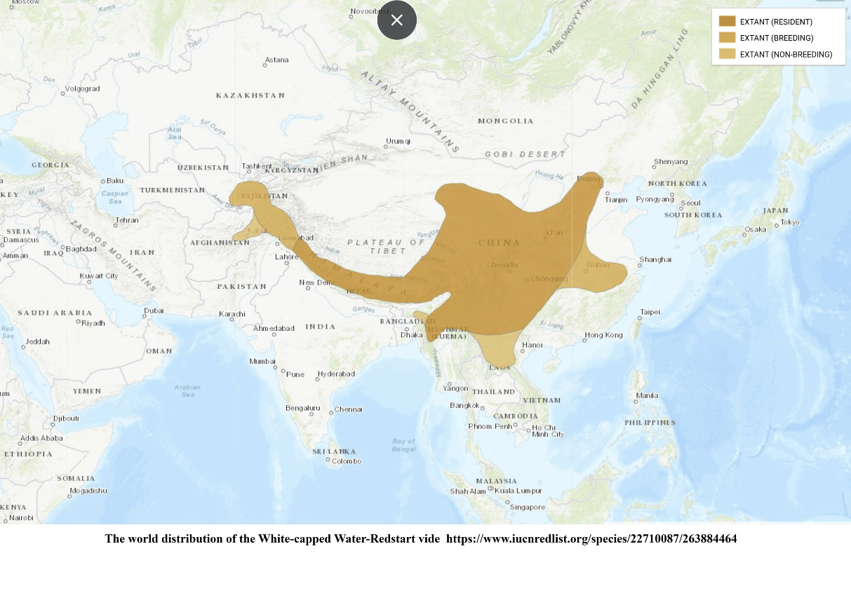 In Bangladesh, the White-capped Water Redstart is an extremely rare winter vagrant: