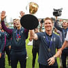 "When the odds were against you in the biggest game of your lives, you simply and stubbornly refused to lose. It is that determination, that character, that has made you world champions. But, more than that, you have made history," May told the players during the drinks reception, according to remarks released by her office.