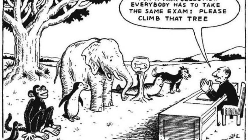You've probably seen that image: an elephant, a fish, and a monkey all told to climb a tree. It's often used to show how the education system unfairly judges everyone by the same test, leaving some to shine and others to feel inadequate. The image makes its point perfectly. But its lesson shouldn't stop at the classroom door.