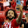 Greek defender Nikolaou, 19, scored for a second time but first for his side when he headed home from a corner to give Olympiakos a scantly-deserved consolation goal in the 89th minute.