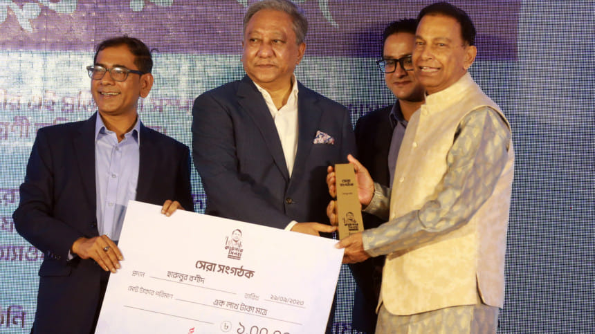 BSPA president Sanat Babla presented the cheque of Tk 1 lakh to Rashid, while the event's chief guest Bangladesh Cricket Board (BCB) president Nazmul Hassan Papon handed the crest.