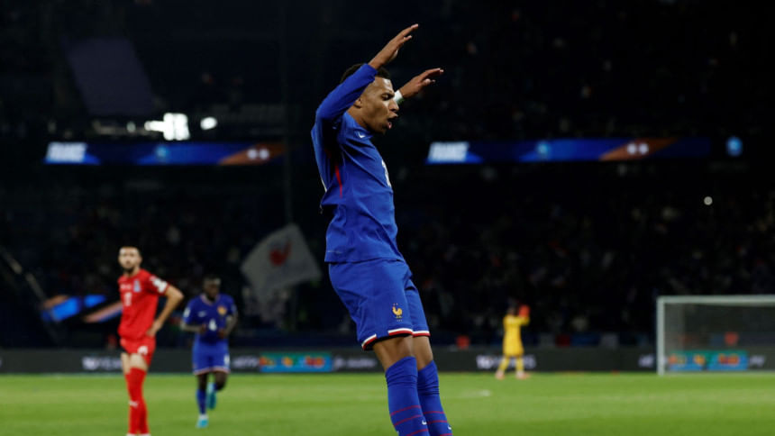 Striker Kylian Mbappe played saviour as France closed in on qualification for next year's World Cup with a lacklustre 3-0 home win over Azerbaijan in their Group D qualifier on Friday, before coming off late with a painful ankle knock.