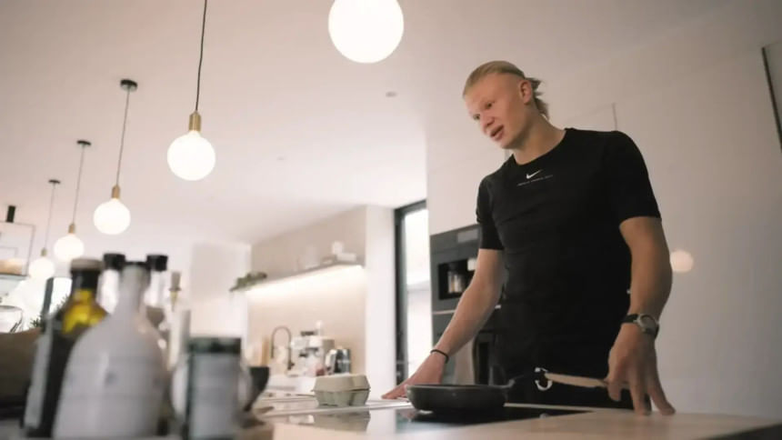 Manchester City striker Erling Haaland puts maple syrup in his coffee, stands in front of a red light machine to absorb vitamin D and is skilled at grilling tomahawk steaks to perfection.