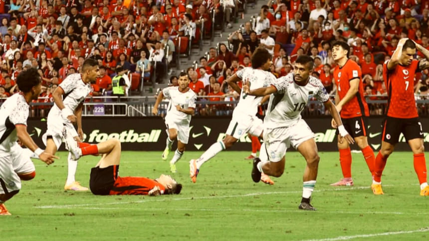 It was a hot, electric night in Dhaka. The floodlit stands roared as thousands of voices merged into the humid air. The scoreboard showed Bangladesh trailing by two goals against Hong Kong, time slipping away, yet hope still flickered. Then came a twist of fortune: a failed clearance from the opposing goalkeeper sent the ball to Sheikh Morsalin inside the penalty area. In a flash, he struck -- and the ball nestled into Hong Kong's net. The National Stadium erupted, the echo of that goal rippling through the night sky. What followed, though, said a great deal about Bangladeshi football.