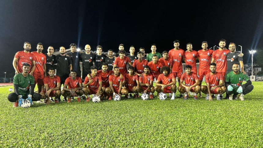 After arriving in Hong Kong early Saturday, the Bangladesh squad underwent a light recovery session at the match venue yesterday.