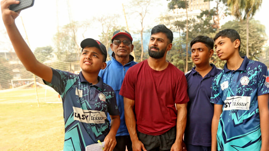 Former Asian Indoor champion sprinter Imranur Rahman trained at the Paltan Outer Stadium on Monday morning as the Bangladesh Army athlete drew attention from young cricketers practising at the venue.