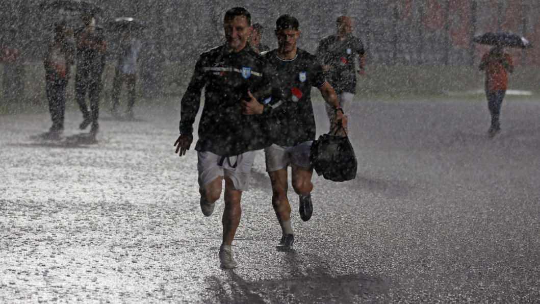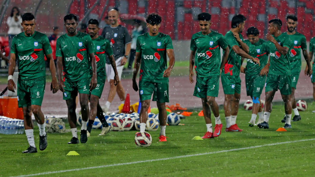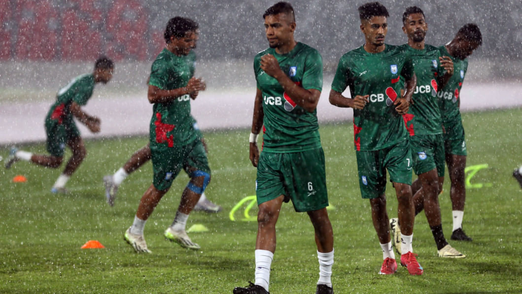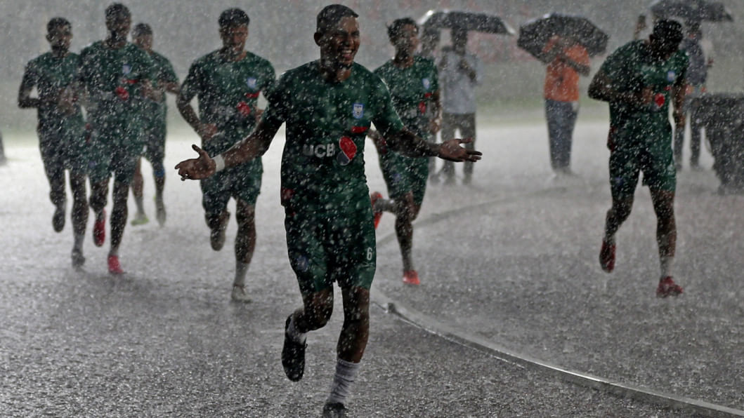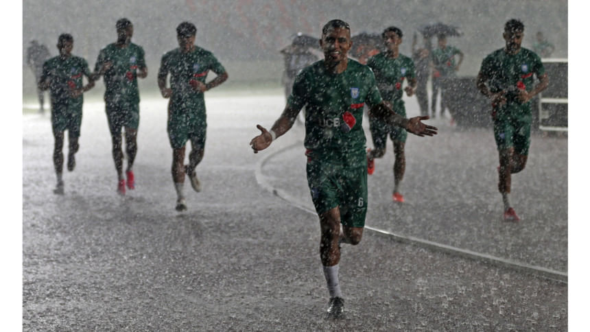 The skies opened up over the capital on Tuesday afternoon, drenching the National Stadium in a torrential downpour that cut short Bangladesh's first training session for the Asian Cup Qualifiers fixture against Hong Kong, China at home on October 9.