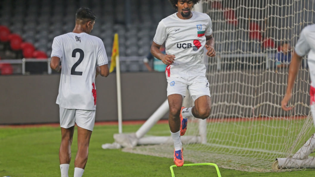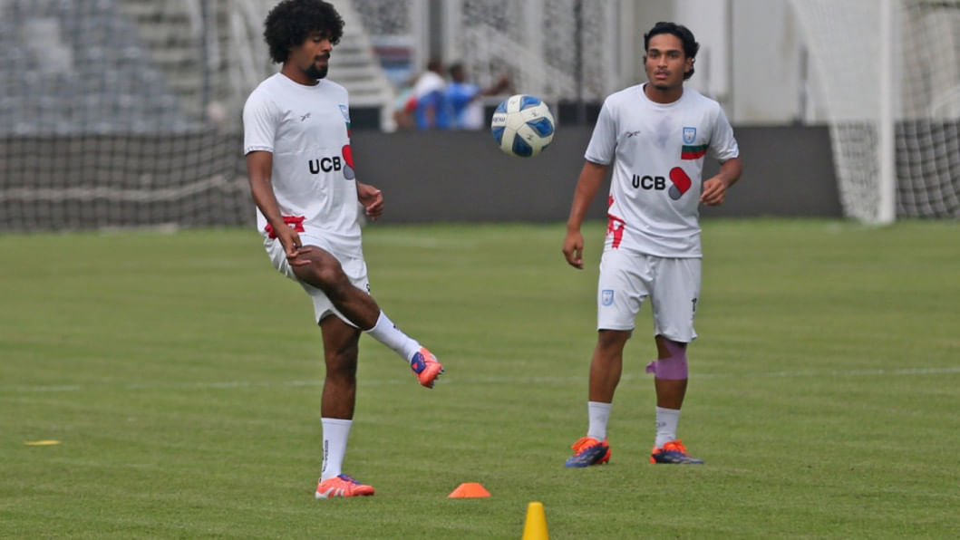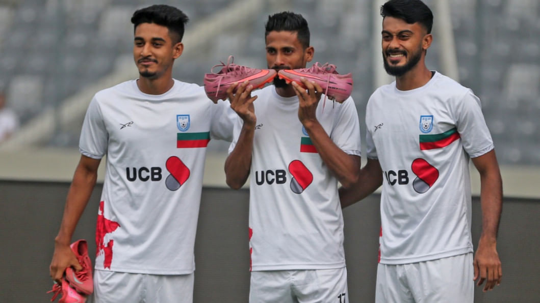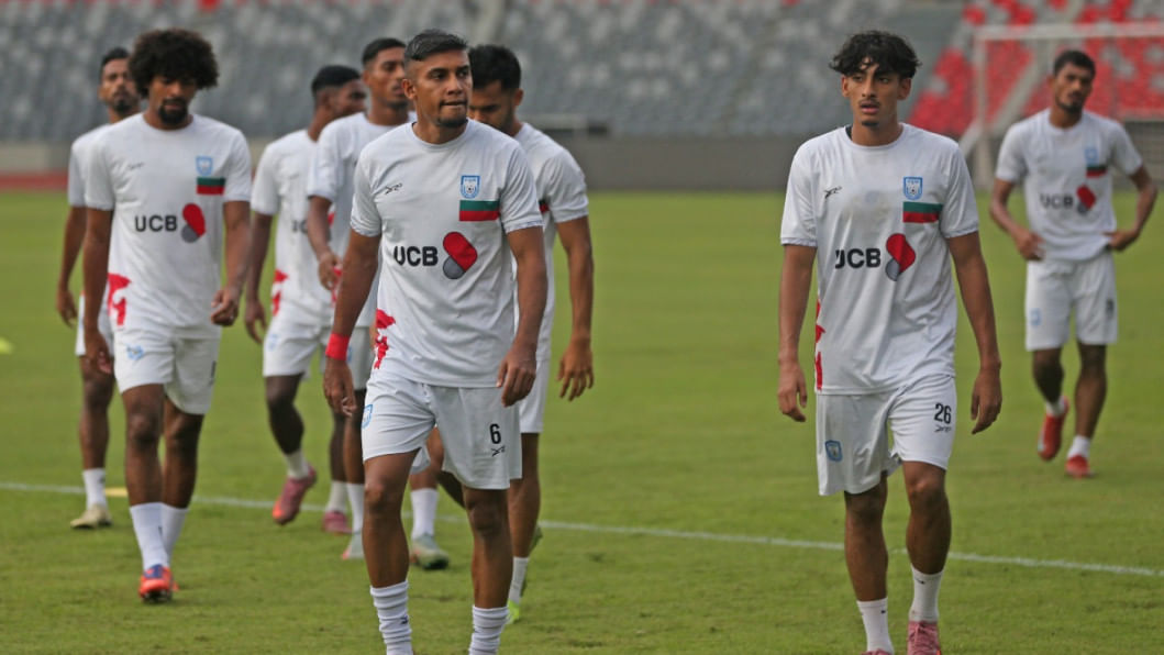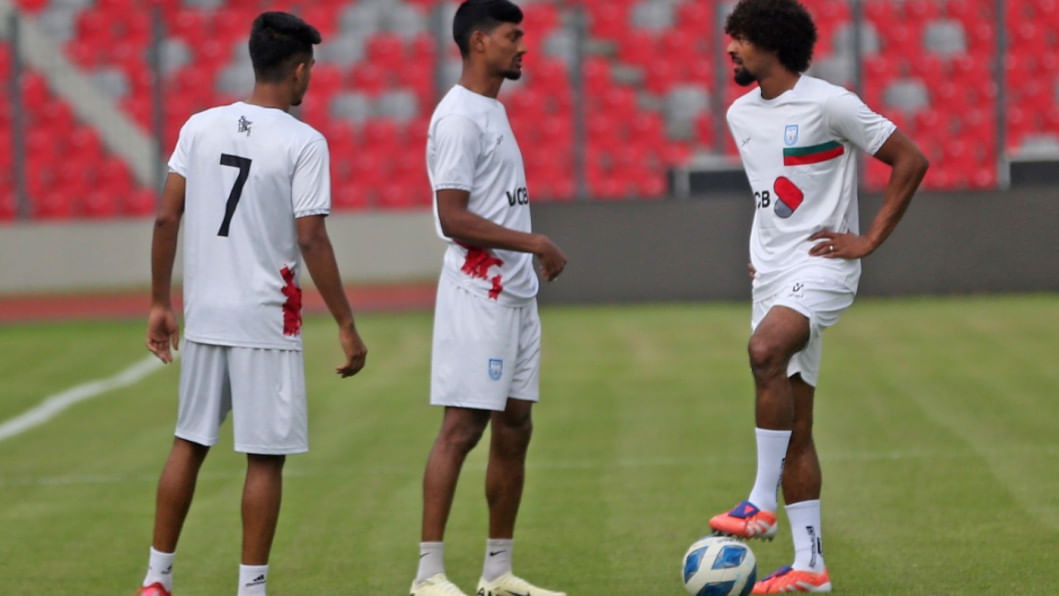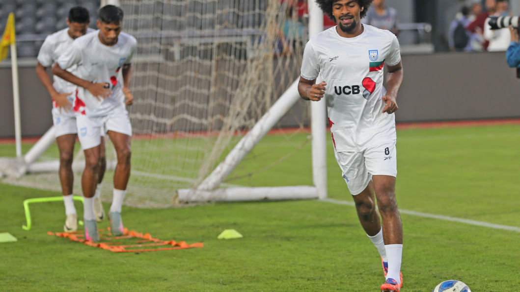 Leicester City's Bangladeshi midfielder Hamza Choudhury reached Dhaka this morning to take part in the national team's upcoming Asian Cup Qualifiers fixtures against Hong Kong, China. The 28-year-old trained with the team under lights at the National Stadium the same evening as the men in red and green gear up for the home fixture on October 9 before travelling to Hong Kong, China for the reverse fixture. Photos: Firoz Ahmed
