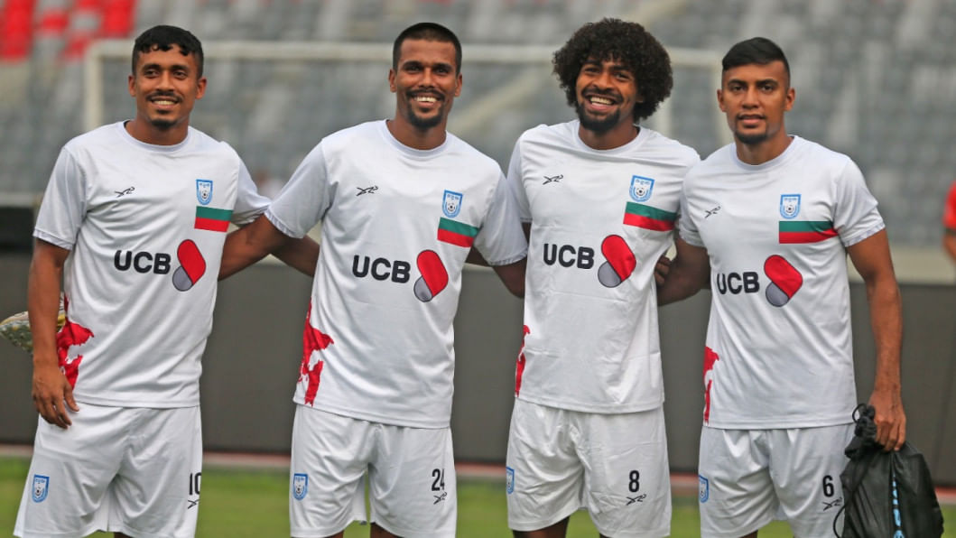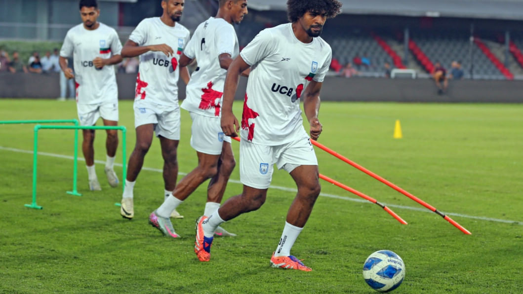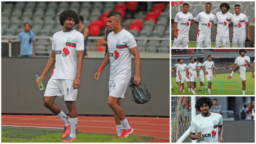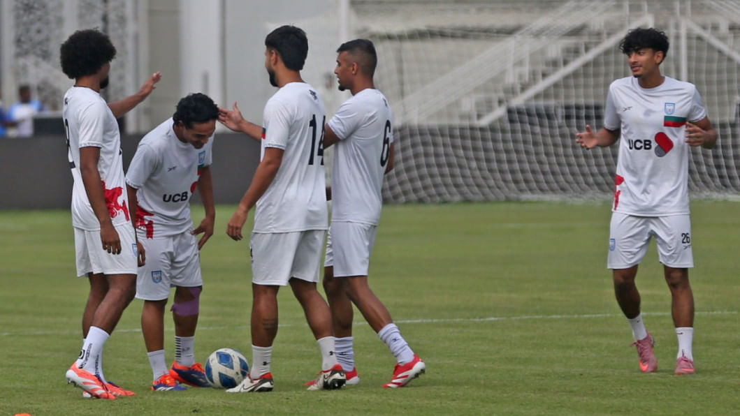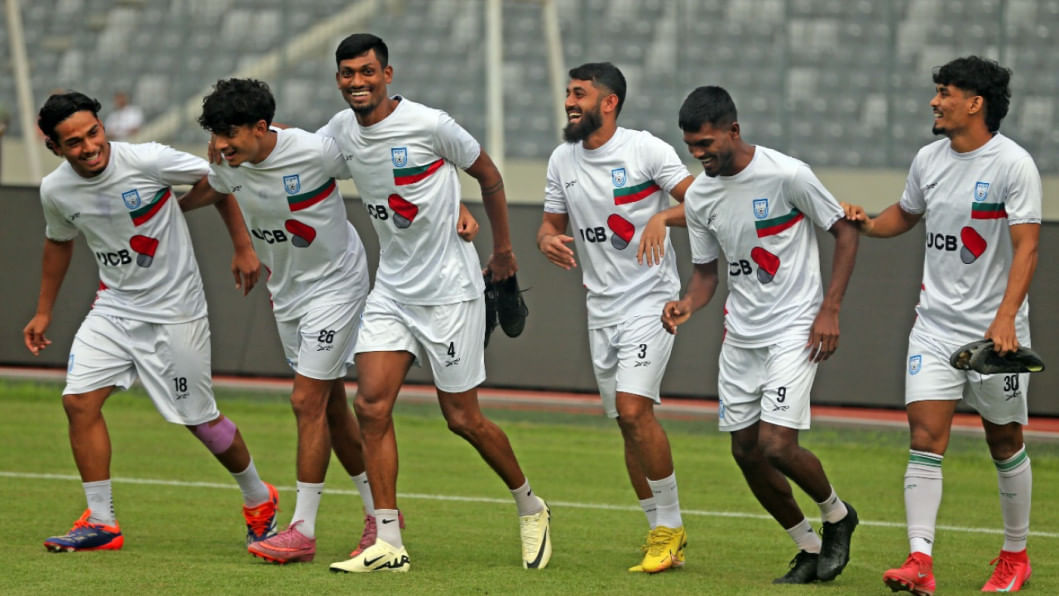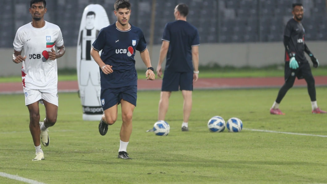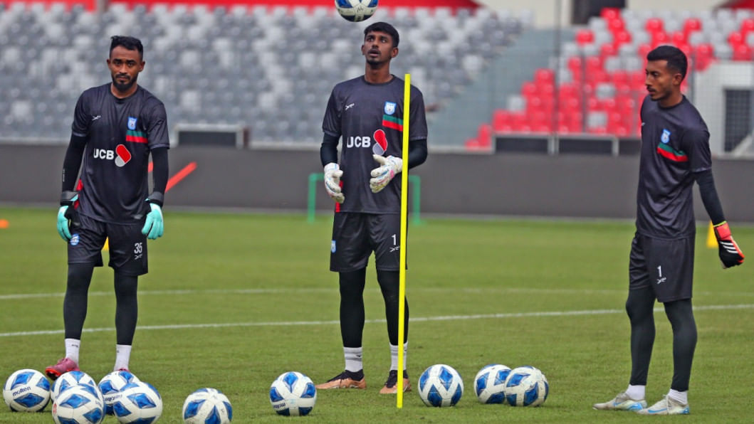 Leicester City's Bangladeshi midfielder Hamza Choudhury reached Dhaka this morning to take part in the national team's upcoming Asian Cup Qualifiers fixtures against Hong Kong, China. The 28-year-old trained with the team under lights at the National Stadium the same evening as the men in red and green gear up for the home fixture on October 9 before travelling to Hong Kong, China for the reverse fixture. Photos: Firoz Ahmed