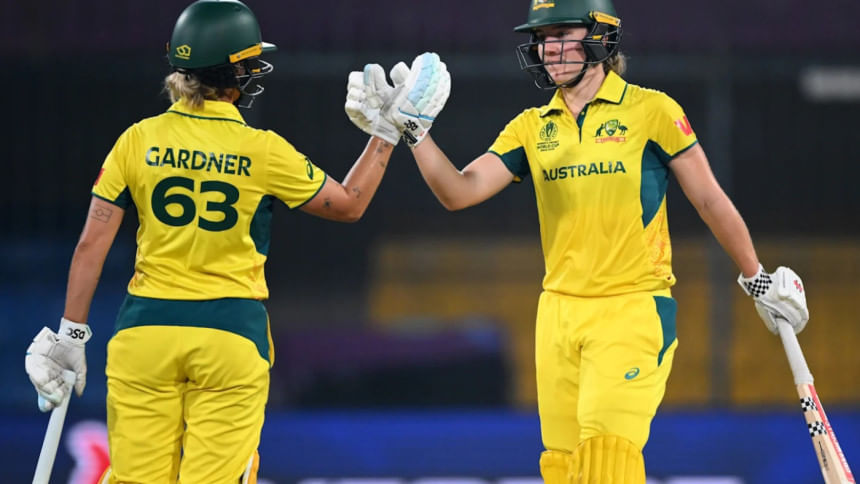 Ashleigh Gardner and Annabel Sutherland starred with the bat as unbeaten Australia completed a convincing six-wicket win over Ashes rivals England on Wednesday in the Women's World Cup.