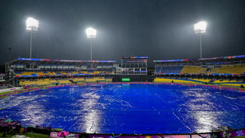 The teams had gone through their warm-ups and were ready for action when the heavens opened, forcing the ground staff at R. Premadasa Stadium to roll out the covers.