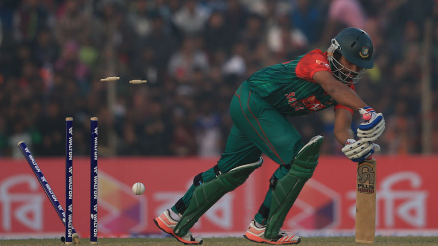 Neville Madziva bowled Tamim Iqbal with a slower delivery that ended up as a yorker, and found very little gap between the batsman's jammed down bat and slow feet. The gap was miniscule, perhaps as wide as the ball itself. But it stunned Tamim, even as the bowler ran off in celebration. Replays confirmed that it was a precisely bowled slower delivery.
