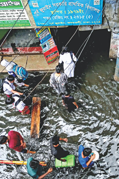 Ashraful is only one of many east Jurain inhabitants who lost all their belongings to permanent water logging. Jurain has been battling persistent flooding for more than 20 years, but no effective measure has been taken to solve this crisis which has now turned into a catastrophe. In some parts of the locality, local people covered the roads with dirt and sand to increase their height so as to keep it free from water logging. Dhaka South City Corporation (DSCC) has also been implementing a costly project of Tk 28 crore to increase the height of all the major roads in east Jurain. In some parts, they have been implementing this project for more than a decade. It has submitted another project of taka 10 crore to increase the height of all the lanes. According to DSCC officials, the first phase of road restoration will be finished by December this year. However, instead of solving the water-logging crisis, DSCC's road restoration project has deteriorated the situation.