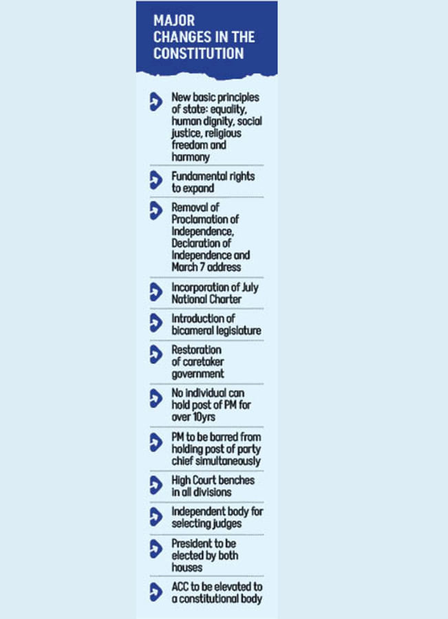 About the new principles, Ali Riaz said, "These will be part of the constitution as core values, which could either be included or replace the old ones."