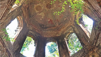 Its two-storied dome, supported by octagonal pillars with the carvings of celestial angels, has several wall inscriptions -- all vague and rugged after combating the weather over the centuries.