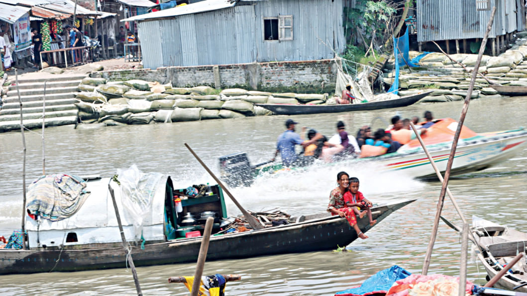 Along the banks of the Arial Khan River in Laharhat under Barishal Sadar upazila, rows of boats lie anchored side by side, swaying gently with the current. Similar floating clusters can be seen along the Kalabadar River near Bukhainagar.