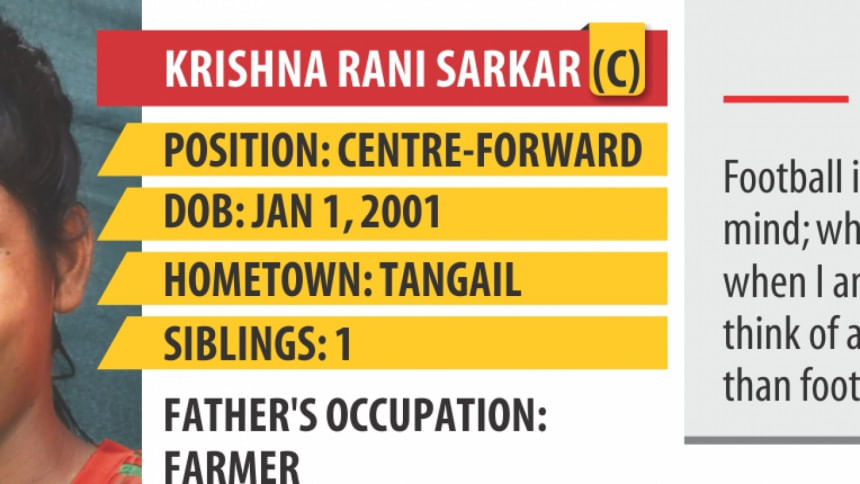 She is the talent that pushes the team forward, the captain who is always front and centre. Her eight goals in the AFC U-16 Championship Qualifiers is staggering. Coming from an underprivileged family in Gopalpur, she was 10 years old when she ventured into the world of school football in 2011 with the Bangamata Gold Cup under threat of censure from her mother.